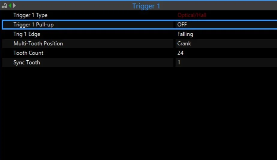 Hall anturi on sitten taas niin kutsutusti aktiivinen anturi, eli vaatii oman virransyötön toimiakseen. Menemättä sen syvällisemmin siihen miten Hall anturi sen hampaan tunnistaa, niin signaali mikä sieltä tulee toimii käytännössä siten että anturin signaalijohto menee maihin (=0V), silloin kun hammas on anturin edessä ja ei maadoitettu silloin kun hammas ei ole edessä. Sitten tullaan siihen että Hall-antureita on kahden tyyppisiä. Suurin osa vastaan tulleista on sellaisia että ne ainoastaan maadoittavat silloin kun metalli on anturin edessä, mutta eivät tee mitään kun ei ole. Eli silloin signaalijohdon jännite jää “kellumaan”, käytännössä saattaa olla mitä tahansa, mutta yleensä ei sitä mitä toivotaan. Tämä saadaan korjattua sillä että laitetaan ylösvetovastus signaalijohdon ja anturin jännitesyötön välille. Yleensä noin 1k ohm vastus on hyvä. Esimerkiksi Megasquirtin tapauksessa tätä ei ole pakko tehdä nimenomaan anturin kytkentään, ja Fullestin myymissä Megasquirteissa on sisälle asennettu jumpperi, jolla kyseisen ylösvedon saa joko käyttöön tai pois tarpeen mukaan. Linkin moottorinohjauksissa kyseisen ylösvedon saa kytkettyä ihan asetuksista päälle